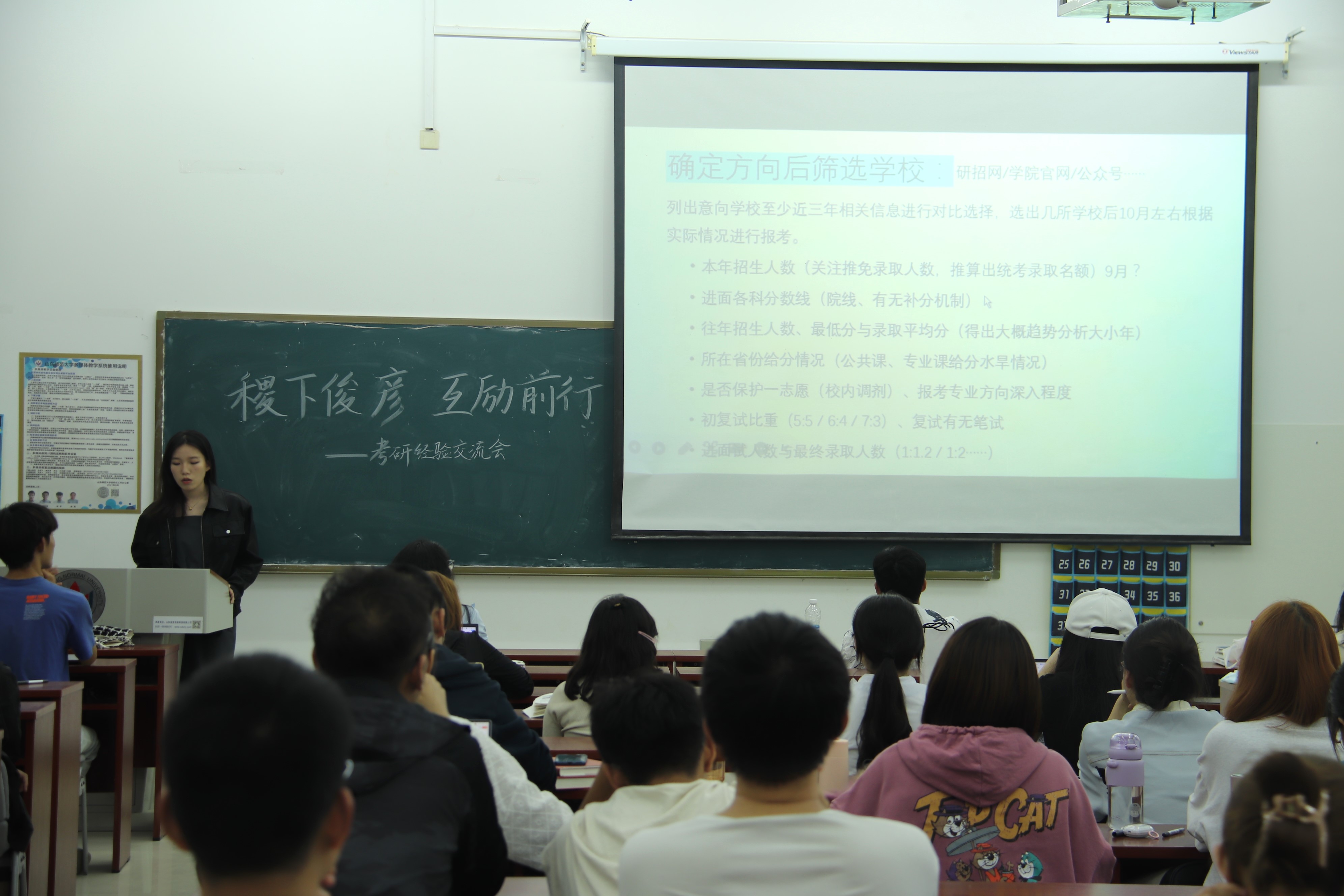 本次考研分享会成功举办,不仅给同学们提供了宝贵考研经验,让同学们更加了解考研相关事项,同时也提升了同学们考研积极性,为我院同学们营造了良好的学习备考氛围。