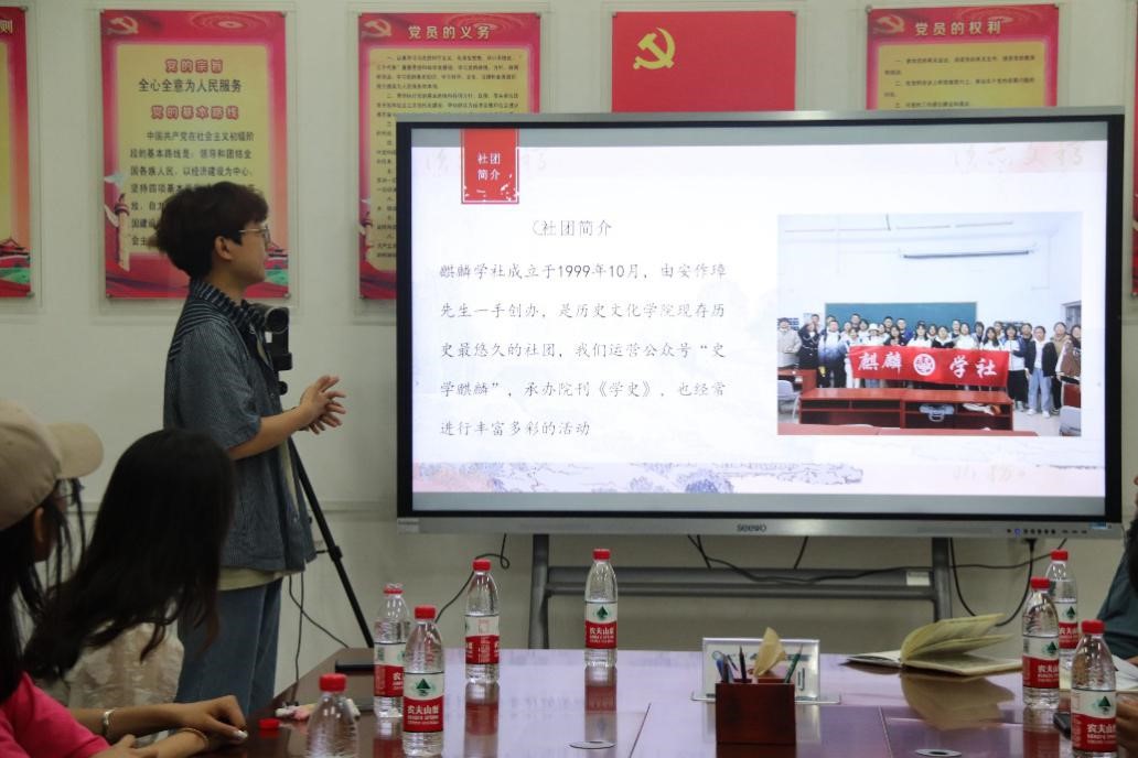 其后,我校杨汶锦同学对麒麟学社的历史、发展、成就等方面进行了大体介绍,通过列举社团建设取得的丰硕成果,生动展示了麒麟学社的深厚历史底蕴,并就社团建设与聊城大学的同学们进行了详细的交流。聊城大学《史苑》编辑部副主编万寿宏同学也对本校学刊的基本情况进行了介绍。