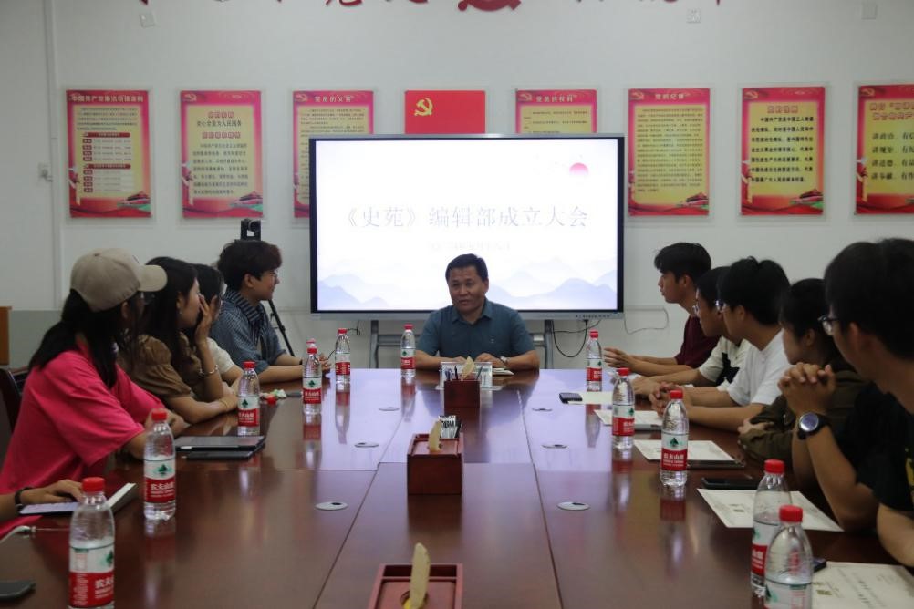 介绍完毕后,聊城大学历史文化与旅游学院副院长官士刚老师对两校社团进行寄语。官士刚首先充分肯定了两校社团的创办,对聊城大学《史苑》编辑部的成立表示热烈祝贺与由衷的祝福,对我校麒麟学社的众多优秀成果给予了肯定与支持。最后,官士刚希望两校加强经验交流与分享,携手进步,共同推动社团发展。