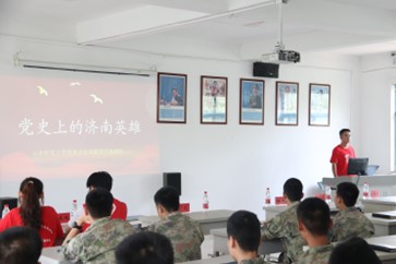 济南,作为中国共产主义组织建立最早的地区之一,在中国共产党历史上占有重要地位。习近平总书记不久前在山东考察时强调:“要保护和运用好红色资源,推动红色基因代代相传。”总书记的重要指示,为从革命历史中汲取智慧和力量、确保革命传统和优良作风薪火相传,指明了重要方向。为此,具有历史专业背景的队员们搜寻整理史料,深挖党史中的济南英雄故事,选取了王尽美,王其鹏,孔庆三三位革命烈士,为基地官兵讲述他们的光荣事迹。