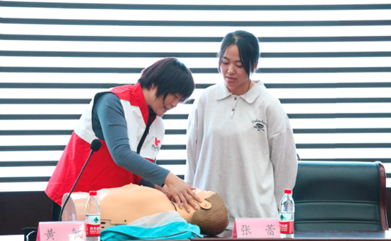 培训伊始,董红芳针对心肺复苏这一急救手段进行科普,对心肺复苏的基本知识、操作步骤等做了详细讲解。讲解后,她对相关知识和常识进行提问,帮助同学们加深记忆,巩固学习成果。