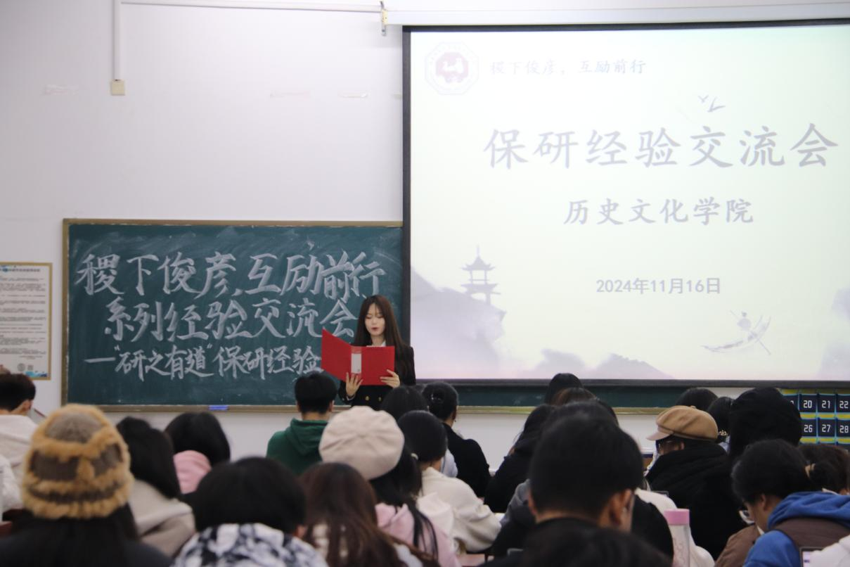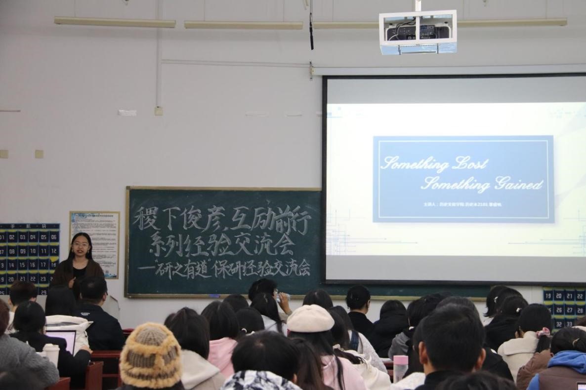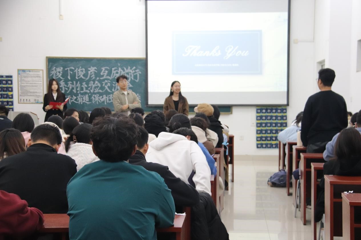 随后,由推免至东北师范大学的李睿帆同学分享自己的推免经验。她强调了明确个人方向的重要性,希望同学们对于未来规划能够做出合适的选择。她分享了个人的成绩与排名,并且结合自身历程向同学们分享时间分配管理和心态调节方法。她重点介绍了如何在保研过程中保持积极心态和高效备考。保研是一场持久战,李睿帆建议同学们应当提前规划,科学安排时间。她希望同学们不断挖掘自身优势,同时紧抓每一个可能的机会,在保研的征途上稳步前行。