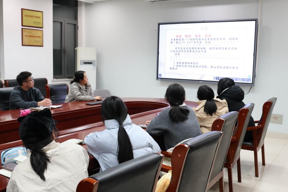 随后,2023级本科生于秀、刘奕帆对实践报告撰写的具体细节进行讲解,从写稿规范、图片拍摄的角度,帮助同学们更好地完善报告内容、提升报告质量。她们强调了社会实践对于宣讲类活动、访谈类活动、社会调研类活动以及志愿服务类活动的各类注意事项,并对活动新闻稿中的常见问题进行解答。