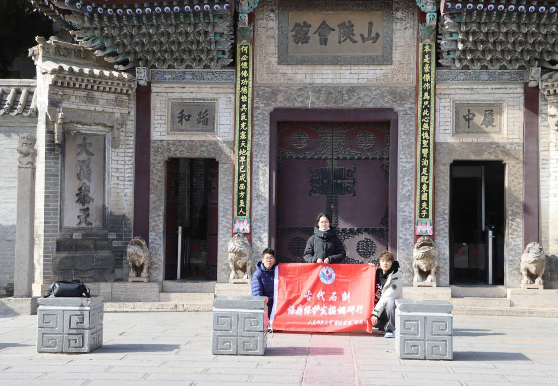 中午,课题组成员对鲁班殿的碑刻保护情况进行调研,发现到此参观的人数有限,未见讲解人员,石刻多为露天保存。