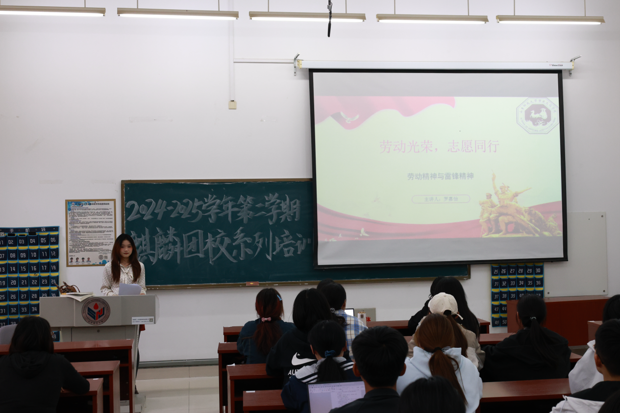 为进一步促进团员全面发展,弘扬劳动精神,推动雷锋精神在新时代的传承实践,英国上市公司365于4月11日下午在崇德楼114教室成功举办了2024-2025学年第二学期第五期麒麟团校——“劳动光荣,志愿同行”主题培训会。此次培训会由2024级罗嘉怡主讲。2024级部分团员参与。