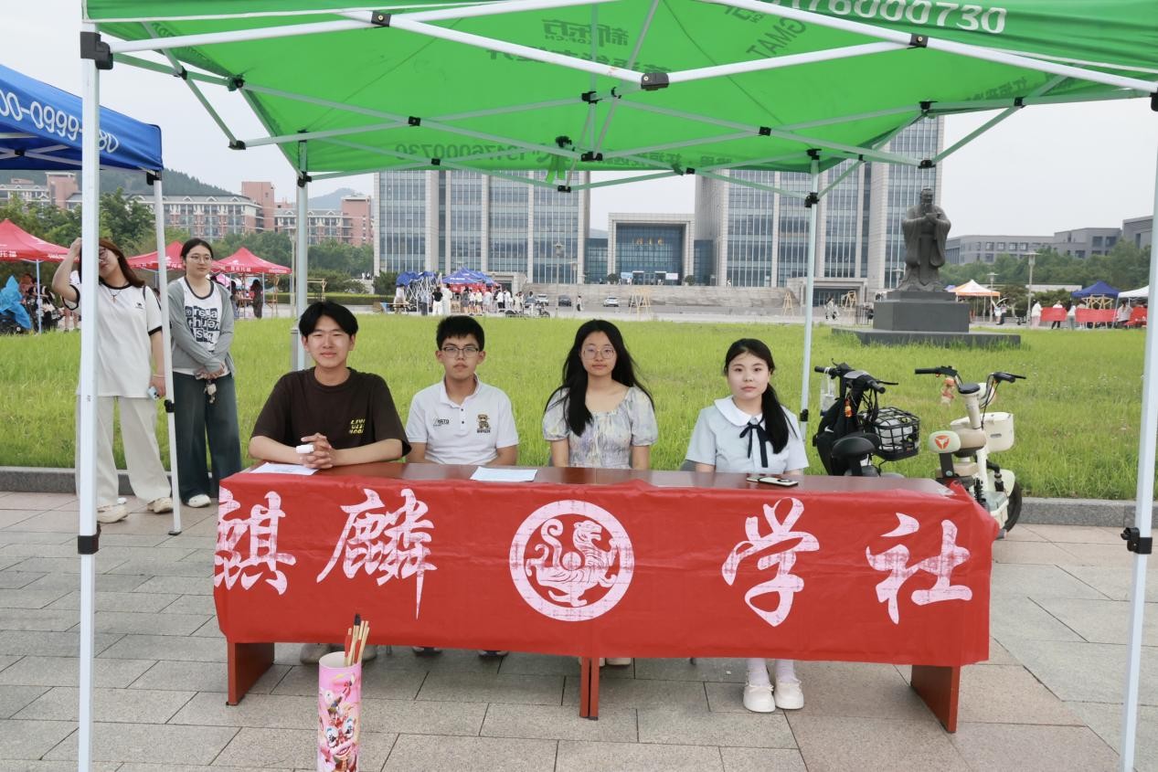 活动现场,麒麟学社以传承历史文化为己任,通过“投壶”这一传统游戏,让参与者在箭矢起落间感受古代雅趣;趣味猜典故环节更是将历史知识融入其中,以轻松活泼的方式激发同学们对历史的探索热情,在古今对话中厚植文化底蕴。桌游棋牌社以象棋博弈与趣味桌游为载体,棋盘上楚河汉界硝烟起,思维碰撞间尽显策略智慧;桌游世界精彩纷呈,同学们在协作与竞技中,锻炼逻辑思维,增进友谊交流。流光画雨汉服社的成员们身着精美汉服,衣袂翩跹,通过静态展示与动态演绎,将汉服的华美形制与华夏礼仪生动呈现,让大家近距离领略传统服饰文化的独特韵味。