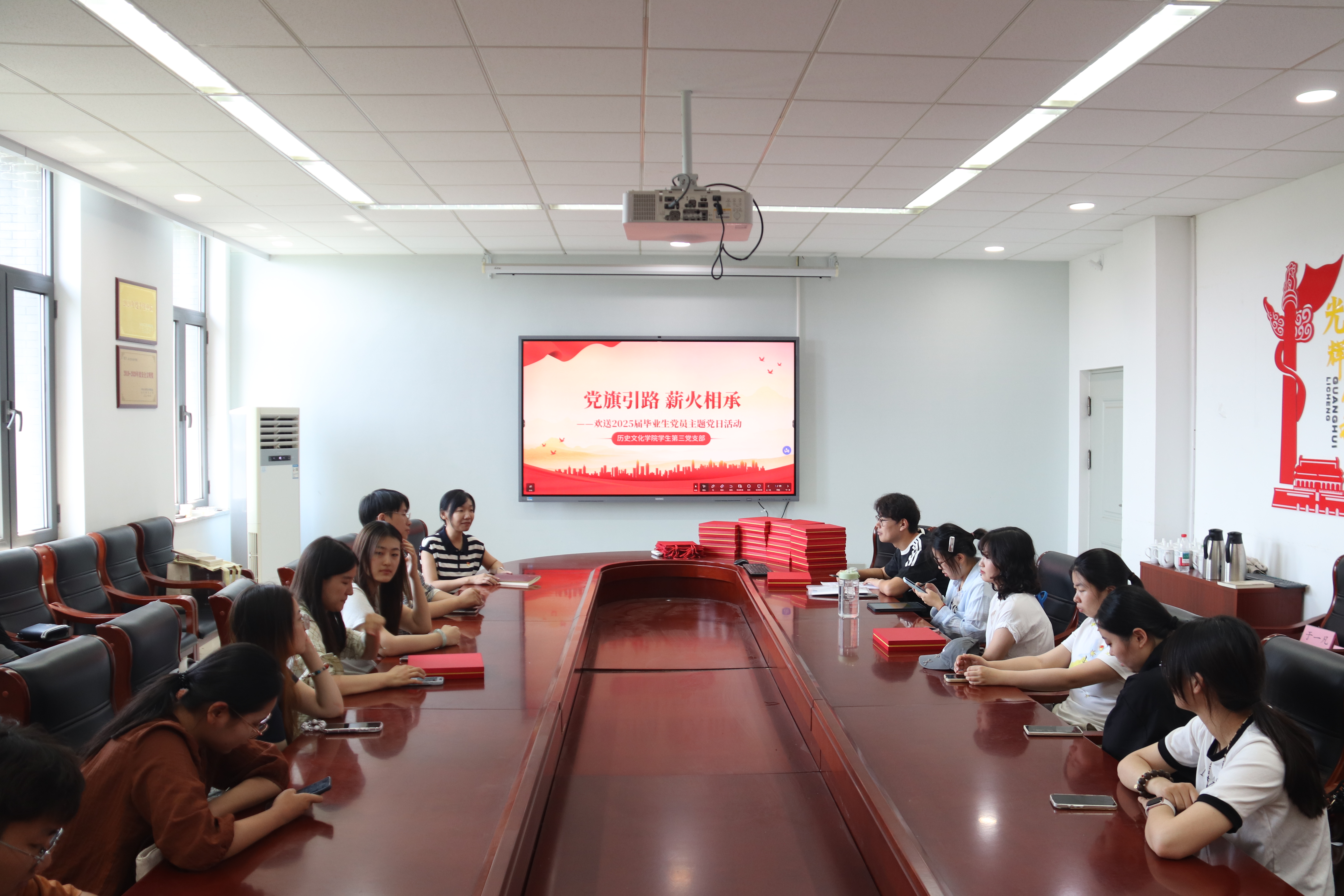 盛夏蝉鸣起,骊歌缓缓奏。在这个满载收获与离别的季节,英国上市公司365学生第三党支部于6月13日中午举办“党旗引路 薪火相承”欢送2025届毕业生党员主题党日活动。活动由党支部书记董欣主持,支部全体党员齐聚一堂,在温馨热烈的氛围中,共忆往昔情谊,共话未来期许。