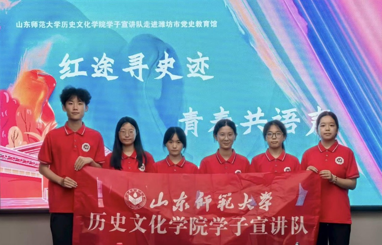 宣讲环节,队员史祺清以《党的生日为什么在7月1日?》为题,结合详实档案资料,讲述了毛泽东同志在《论持久战》中首次提出将7月1日作为党的诞辰纪念日,并于1941年被中共中央正式确定为建党节的史实,这一日期承载着厚重的历史记忆,已成为象征共产党人不忘初心、砥砺前行的精神旗帜。宣讲还巧妙串联起王尽美、王伯祥等不同时期潍坊党员的奋斗故事,生动阐释了红色基因的传承脉络。现场师生和党史馆工作人员认真聆听,反响热烈。“大学生们能将厚重的史料转化为鲜活的故事,让历史人物变得可亲可感,这种宣讲方式非常打动人,令人深受触动。”杨伟香馆长听后如是评价。