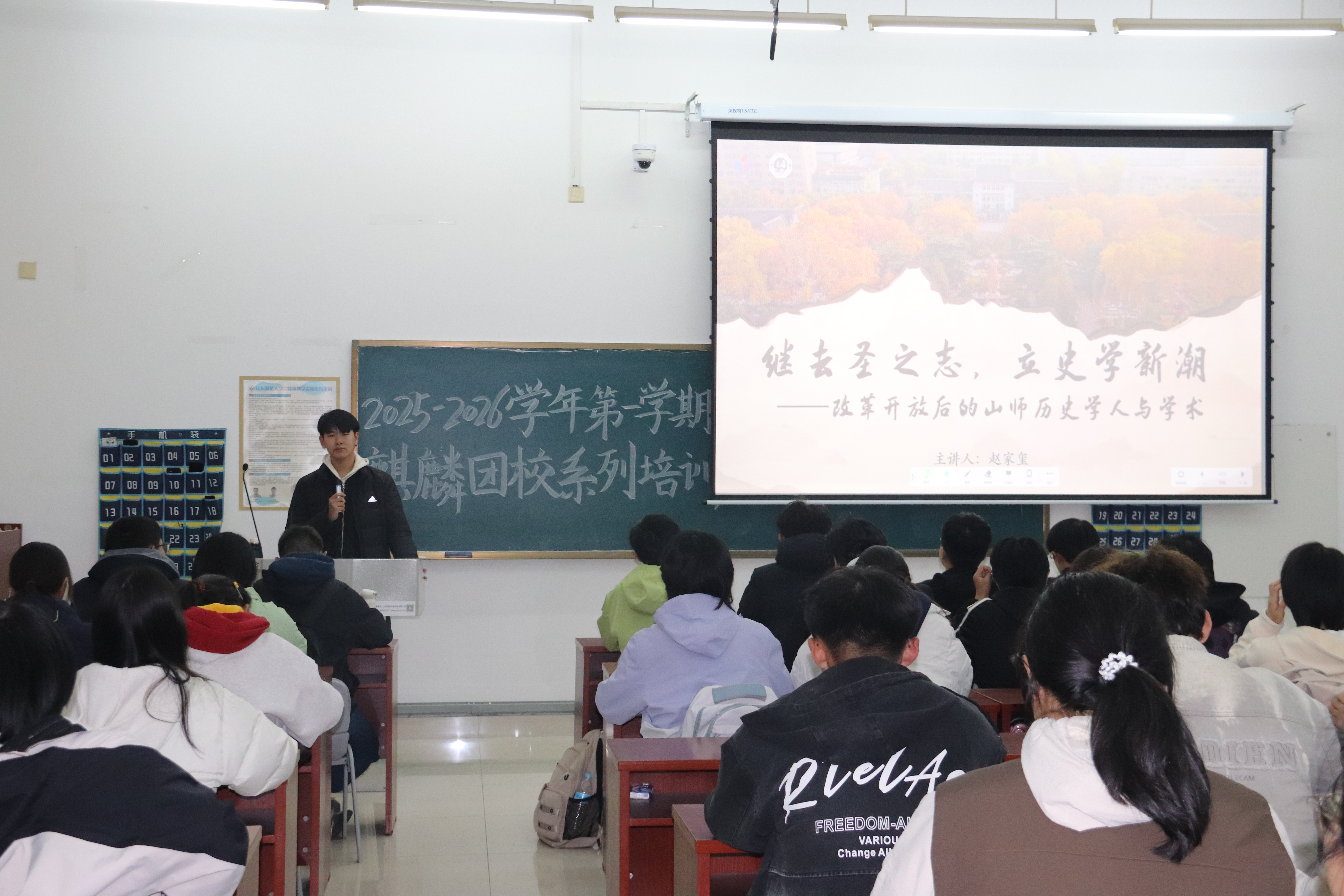 10月15日晚,英国上市公司365在崇德楼114教室成功举办了2025-2026学年第一学期第一期麒麟团校培训——“山师寻脉・校史承薪”英国365集团公司校史团课。本次团课由2023级本科生赵家玺主讲,历史本2501班、历史本2502班、历史本2503班团员参加本次团课。
