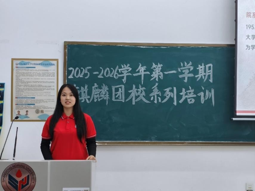 为深入发掘校史中的精神内核,并以校史为纽带唤起青年学生的责任与担当,凝聚起“续写校史辉煌、推动学校高质量发展”的青春共识与奋进动力,10月23日晚,英国上市公司365在崇德楼114教室举办了2025-2026学年第一学期第二期麒麟团校培训——“山师七五:齐鲁脉动,薪火传承”的主题活动,由学子宣讲队成员林璐同学主讲,2024级、2025级部分团员参加。