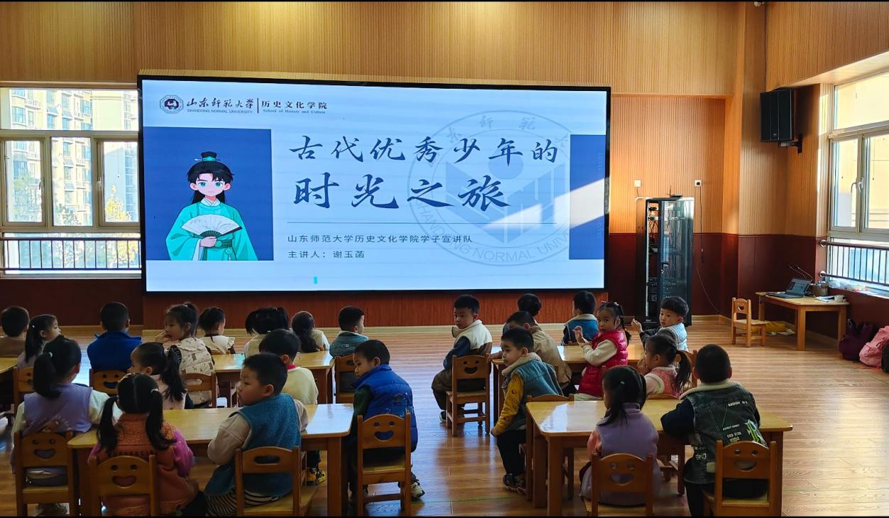 宣讲中,谢玉菡结合幼儿的认知特点,用卡通图案辅助讲解,以“智慧”“孝亲”“勤学”“城市”四个关键词为脉络,将东方朔、黄香、孙康、宋濂四位古代少年的故事讲得绘声绘色。“说话小天才”篇章里,她讲述了少年东方朔凭借机敏思维化解难题的趣事,用“趣事巧解围”这一细节,让小朋友们直观感受智慧的力量;“扇枕温习”环节中,“香九龄,能温席”的典故被具象化,她模拟黄香寒冬为父亲暖被的场景,告诉孩子们孝顺就是从身边小事做起;“坚持小达人”部分,她用动画短片片段辅助,再现了孙康借着雪地反光苦读的画面,“雪光当灯”的故事让孩子们纷纷瞪大了眼睛;“诚信小少年”篇章里,她以“凿壁借光”的延伸故事,讲述宋濂冒雪求学、诚实守信的经历,让小朋友们懂得坚持与诚信的可贵。