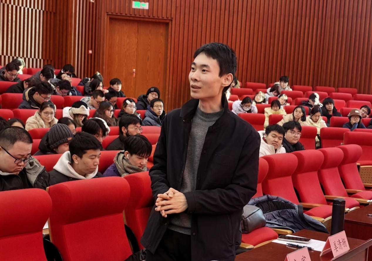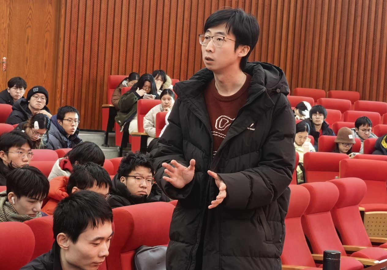 最后,姜清扬结合自身参与各类教学竞赛的经历,重点分享了“以赛促练”的成长路径。他提到,各级各类的教学技能大赛都是快速提升教学能力的优质平台。他建议同学们从大一大二就可以关注赛事信息,提前打磨教学设计,在备赛过程中吃透教材、锤炼语言、积累课堂应变经验。同时他提醒,竞赛不仅是展示的舞台,更是发现问题、弥补短板的机会,每一次参赛都要做好复盘,把赛场经验转化为日常教学的底气。随后,姜清扬与同学们分享了自己在烟台市、连云港市以及济南市的赴招经历,详细讲解了各地的招聘形式,以及自己是如何在多次尝试中积累经验,最终成功上岸。