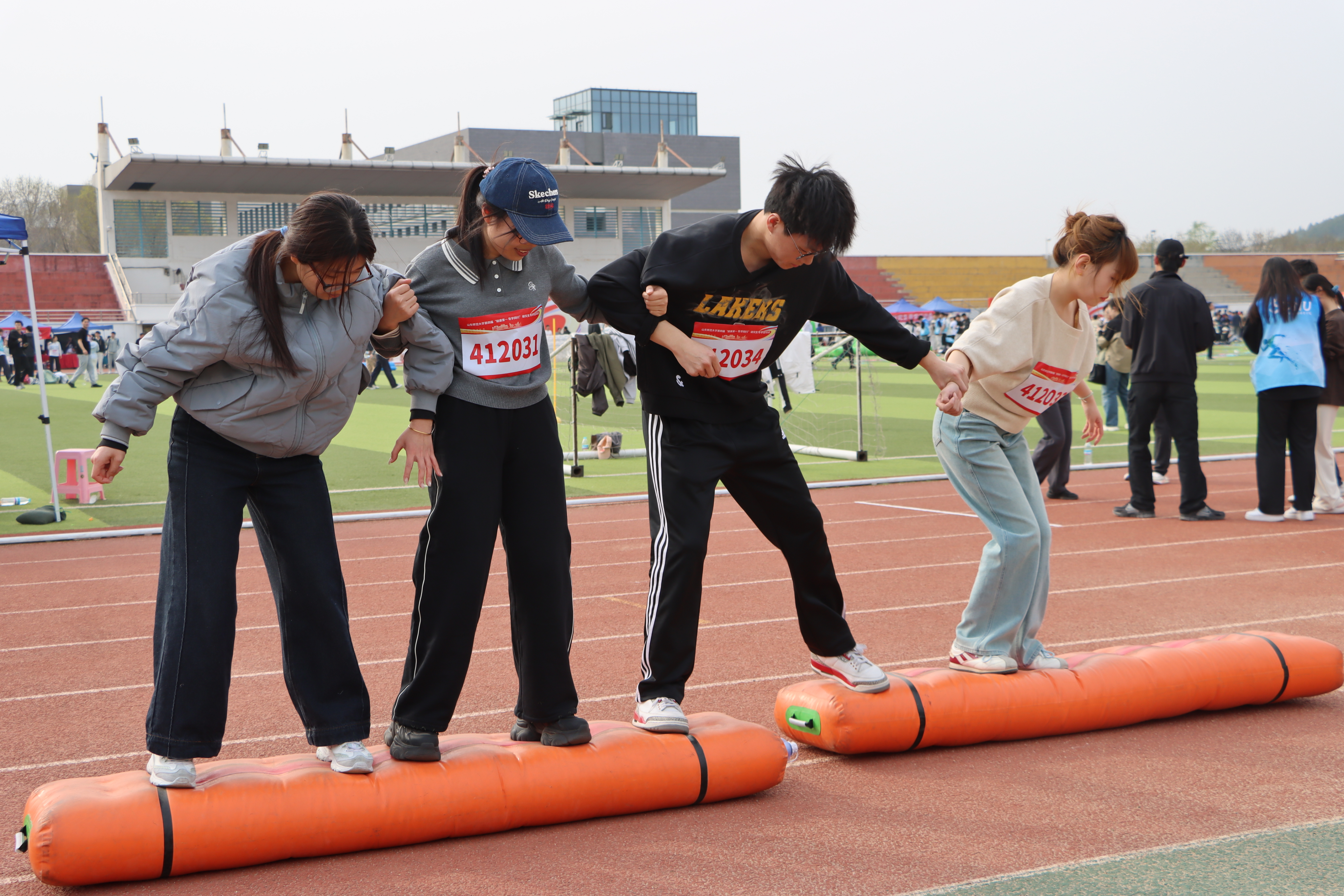 此次运动会延续“导学同行”核心主题,精心设置同舟共济、托球接力跑、搭桥过河、勇攀高峰等9个兼具趣味性与协作性的项目。活动一经发起,便得到了学院师生的积极响应,大家踊跃报名参与,根据项目特点精准组队,最终共组建15支队伍投身角逐。4人项目、5人项目、6人项目各组建5支队伍,每一支队伍都凝聚着师生同心的力量,他们在赛场上全力以赴、奋勇争先,展现出勇于拼搏的精神面貌与和谐融洽的师生情谊。