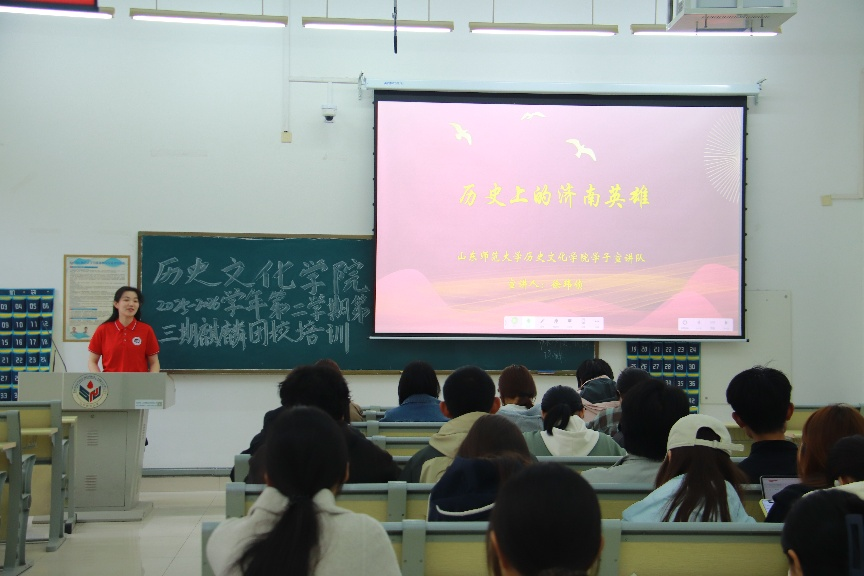 为追寻济南红色足迹,传承革命精神,凝聚奋进力量。4月9日下午,英国上市公司365于崇德楼114教室举办2025-2026学年第二学期第二期麒麟团校培训。本次培训以历史上的济南英雄为主题,学院学子宣讲队队员徐玮侦担任主讲人,历史本2501班和历史本2502班全体团员参会。
