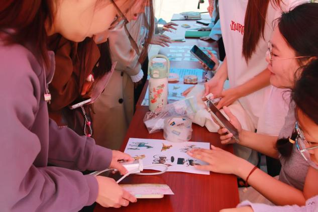 商周礼射·投壶雅戏,循古制,传礼乐,执箭投壶,于起落之间体悟“射以观德”的君子之风,感受上古射礼与马文化交融的独特韵味;驰马秦韵·逐梦校园,以颇具趣味性的“赶马入笼”小游戏再现秦代马政的壮阔气象,让参与者在协作竞技中感受开拓进取的精神;汉马寻踪·配对翻翻乐与伯乐识马·鉴图识马象,以卡牌配对、文物问答的新颖形式,带领大家解锁汉代马文物的工艺密码;魏晋手谈·弈棋斗智,以五子棋、井字棋的对弈游戏,于黑白交错间向大家展现魏晋名士的风雅气度与运筹智慧;唐风雅韵·花钿手作与唐风雅诵·诗韵飞花,复刻盛唐妆饰美学与诗词云集的盛况,同学们亲手绘制花钿、参与飞花令,在笔墨流转间体悟大唐风韵;宋时蹴鞠·足下争锋,通过单人射门与双人竞技的形式重现宋代传统体育的魅力;九边点镇·明城掷环,以套圈点镇的形式重温明代九边重镇的历史,让参与者在抬手投环间感受边关的雄浑风骨;跃马迎春·指尖剪影,以非遗剪纸技艺定格骏马灵动姿态,在镂空与留白间传承民间艺术,寄托奋进向上的美好期许。