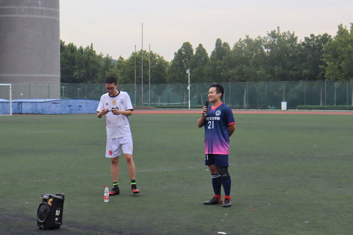 参赛两队分别是由2017、2020级组成的联队和由2018、2019级以及2016级毕业生组成的联队。赛前两队进行热身活动,以饱满的精神状态投入这次友谊赛。