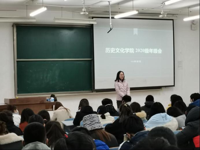 2020级会议伊始,蒋艺老师首先表达了对同学们的关心与思念,并强调了疫情防控的重要性,提醒同学们在学校实行的半封闭管理下应注意个人卫生、戴好口罩、避免聚集。紧接着,蒋艺老师总结分析了上学期的年级成绩,就新学期的学习与生活对同学们表达了期望,激励同学们把握新学期开学的契机,为新学期奠定良好的开端。随后,蒋艺老师强调了大学生纪律问题以及宿舍卫生问题,引导同学们严格要求自己,做一名遵守纪律、自律自强、积极向上的大学生。最后,蒋艺老师提及部分同学面临的学业困扰等问题,希望有意向的同学可以与她进行进一步面对面的沟通与交流。