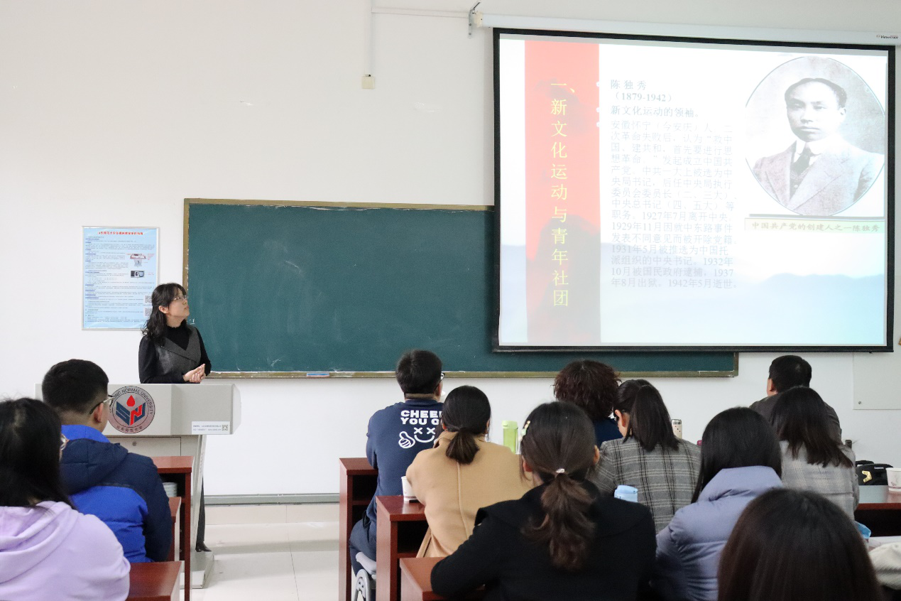 随后,第一次团课开始。本次团课主题为“坚定信念,奋斗青春”,由副教授盖志芳主讲。盖志芳老师通过重温中国共产主义青年团的成立过程,在带领青年团员们回顾中国共青团历史的同时,将当时青年们所具有的担当精神、责任意识、爱国情感淋漓尽致地传达出来,并指出中国共产主义青年团的发展离不开中国共产党的领导,在座的青年团员们也受到极大的鼓舞。最后,本次团课在歌唱《光荣啊,中国共青团》中圆满结束。