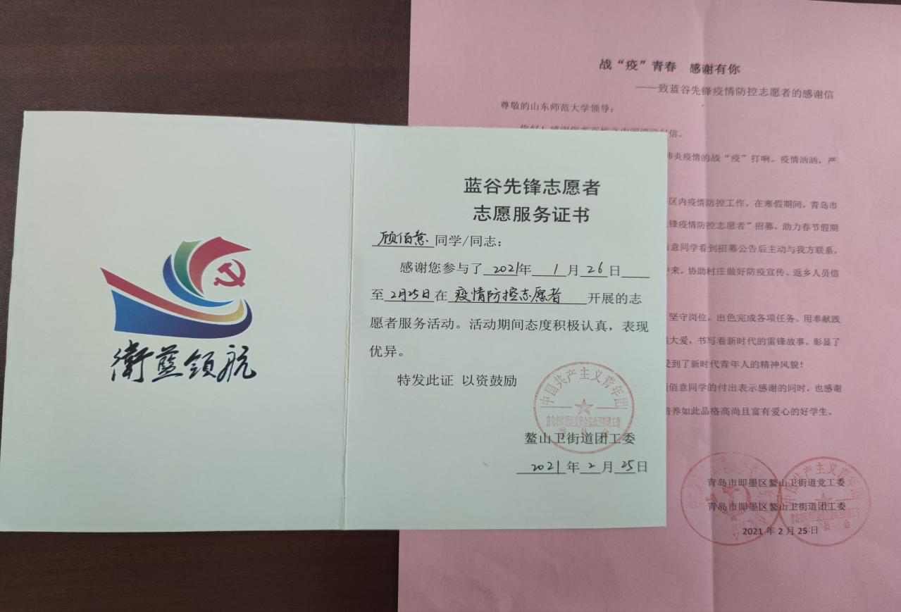 首先,在采访的开始,我们了解到志愿者们选择参加志愿者活动的初衷是想为社区做贡献,为家乡做一些力所能及的事,这体现出同学们的奉献精神。参加活动的同学们也希望通过志愿工作来获取更多的社会经验,提高自己的各种能力。在这个过程中提高了同学们服务社会的能力。在参加活动的过程中,顾佰意同学表现优异,获得了表扬信。