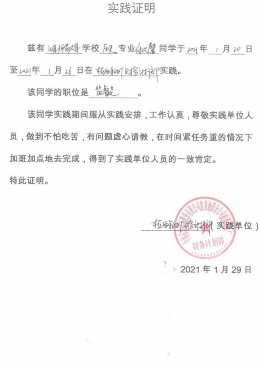 2019级王美琪同学则是在淄博市高青县的工业和信息化局的技术改造科实习,这次的实习经历使她受益匪浅,她更好的了解了家乡今年工业信息化和现代化的发展状况,加深了对家乡发展近况的了解。