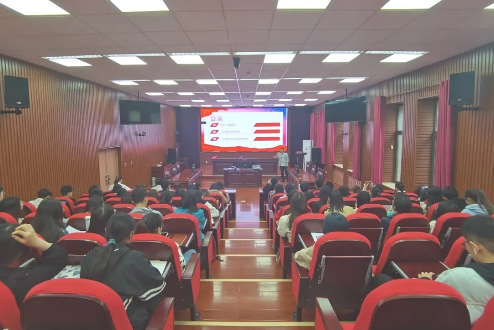 为庆祝建党100周年,在党史学习中砥砺初心使命、汲取奋进力量,4月22日下午,英国上市公司365党史学习教育学子宣讲队在法学院进行了校内首场党史汇报宣讲会。我院学子宣讲队成员王浩在明德楼模拟法庭进行了以“不忘初心,牢记使命——重温中共一大”为主题的党史宣讲,学子宣讲队部分成员以及法学院各年级中共党员、入党积极分子等60余人在现场听了宣讲。
