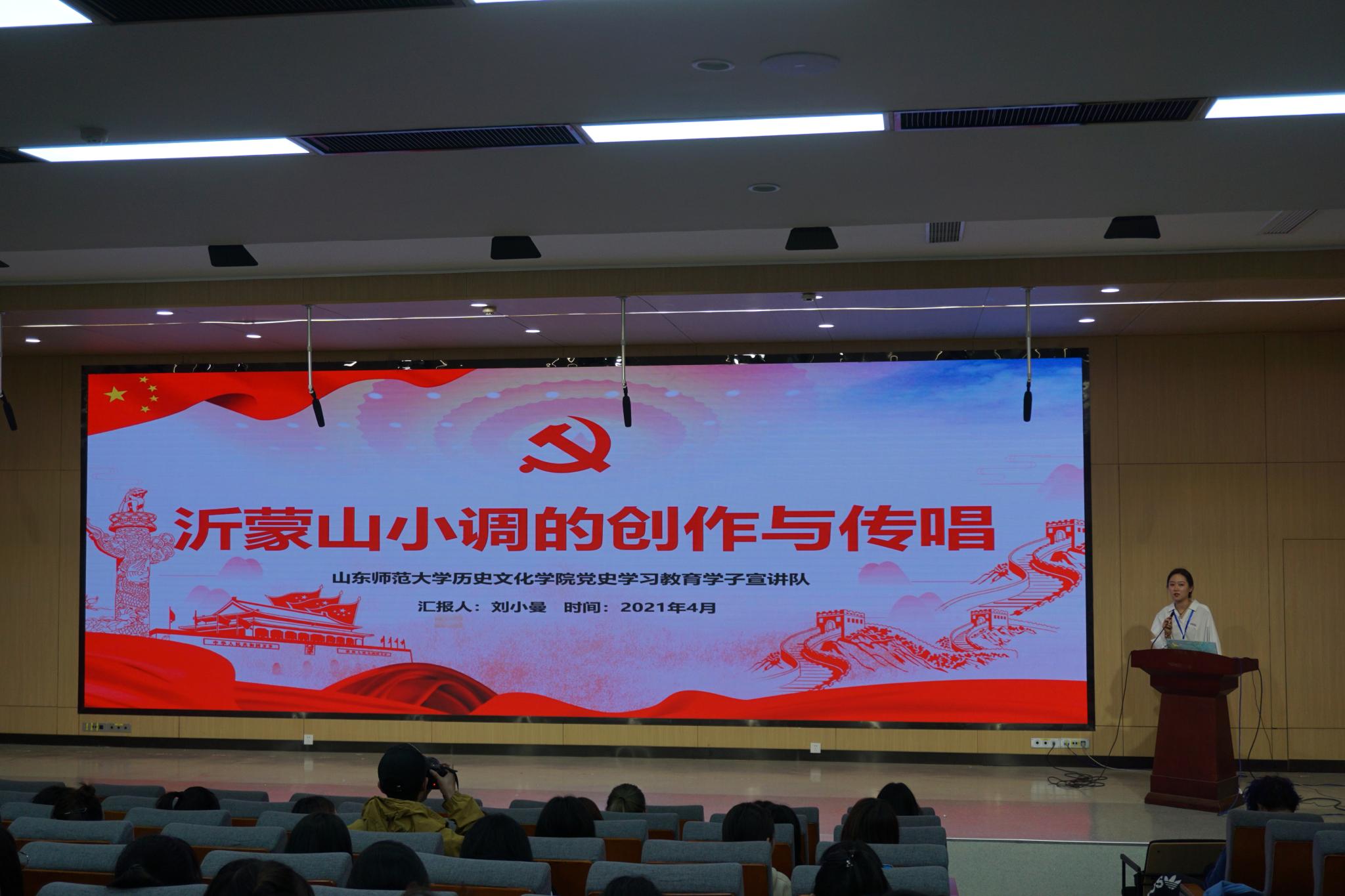 为庆祝建党100周年,在党史学习中砥砺初心使命汲取奋进力量,4月28日晚上,英国上市公司365党史学习教育学子宣讲队在山东工艺美术学院人文艺术学院进行了党史汇报宣讲会。宣讲队成员刘小曼在山东工艺美术学院报告厅进行了以“沂蒙山小调的创作与传唱”为主题的党史宣讲,山东工艺美术学院人文艺术学院各年级中共党员、入党积极分子、2020级全体新生团员以及学子宣讲队部分成员等200余人在现场听了宣讲。