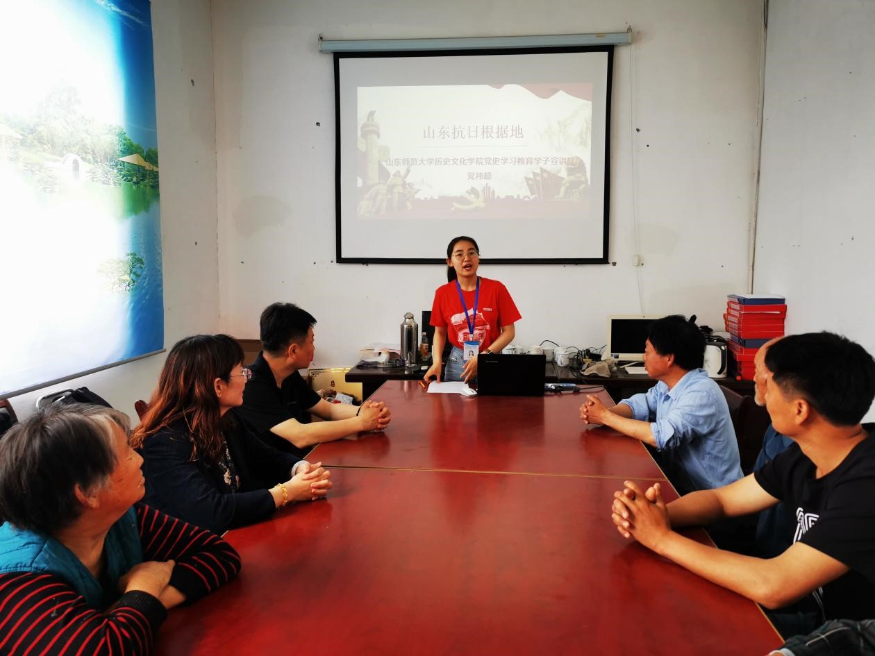为庆祝建党100周年,在党史学习中砥砺初心使命,汲取奋进力量,5月15日上午,英国上市公司365党史学习教育学子宣讲队在长清区平安街道后升村进行了党史汇报宣讲会。宣讲队成员党祎超进行了以“山东抗日根据地”为主题的党史宣讲,小王管理区赵鹏书记,小王管理区朱辉主任,以及学子宣讲队部分成员等22人在现场听了宣讲。