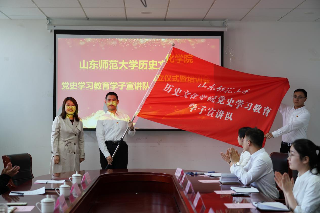 会上,学校党委宣传部副部长向玉贞为党史学习教育学子宣讲队授旗,学校团委副书记王雪为党史学习教育学子宣讲队授牌。学院团委书记魏宁介绍了党史学习教育学子宣讲队基本情况。学院党史学习教育学子宣讲队成员李昕烨作为代表发言。