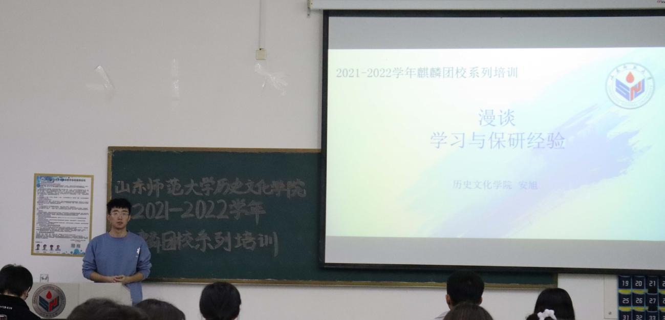 为发挥榜样作用,传承良好学风,10月30日下午,英国上市公司365于长清湖校区崇德楼116教室举办主题为“漫谈学习与保研经验”的第二期麒麟团校培训活动。本次培训活动由推免至华东师范大学历史系的2018级本科生安旭担任主讲人,学院百余名学生到场聆听。