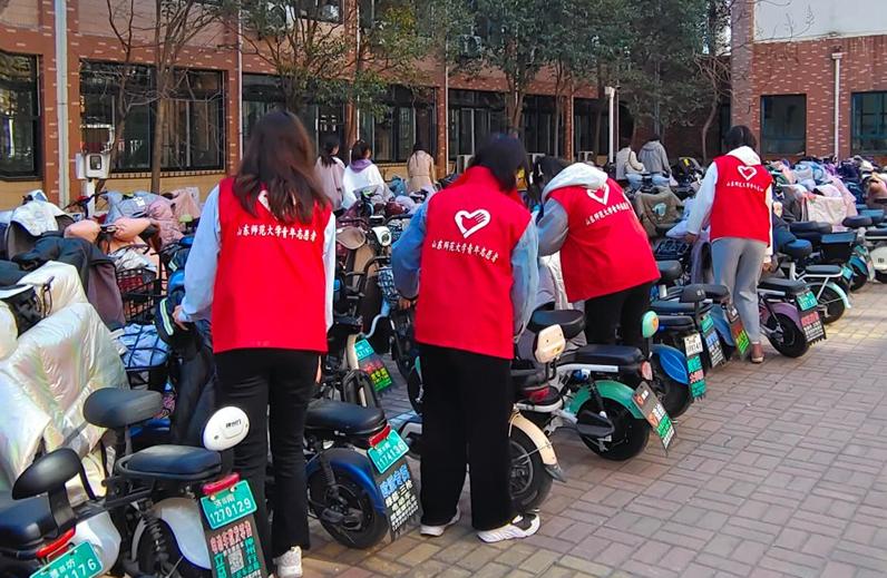 活动伊始,志愿者们在指定活动地点集合,领取志愿者工作服与卫生工具,进行分组后迅速投入电动车摆放工作。随后,志愿者们针对车辆摆放不规范等情况,将侵占过道、停放无序的电动车合理停放。与此同时,另一组志愿者手拿垃圾袋,将道路上遗留的卫生纸,塑料袋,废弃雨衣等进行了清扫。寒冷的天气没有打消同学们的积极性,大家不辞辛劳、团结合作。最后,在大家的共同努力下,一排排摆放整齐的电动车成为亮丽的风景线。真正以实际行动推进美丽校园建设。