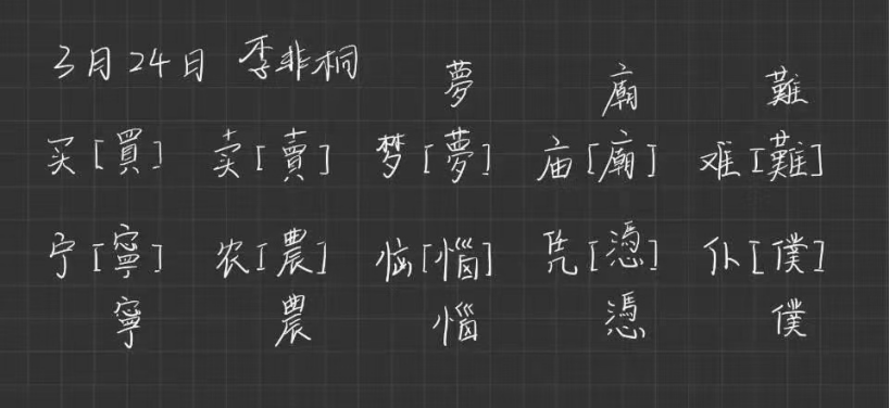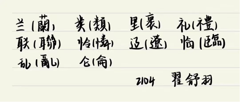 活动第一阶段,参与人员采取线上打卡的方式上传学习内容,由学生会据打卡要求对提交的打卡内容、打卡次数进行审核,并对满足基本要求的同学发布第二阶段线下考试参赛证明。参与人员在繁体字识记打卡期间互相监督和鼓励,收获颇丰,同学们纷纷表示此次活动让自己正确认识到了汉字嬗变的规律,不仅对专业的学习有一定的帮助,而且也为网课这段特殊的时期增添些许色彩。