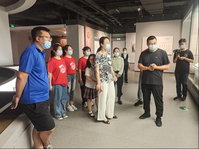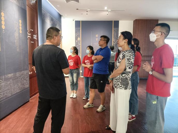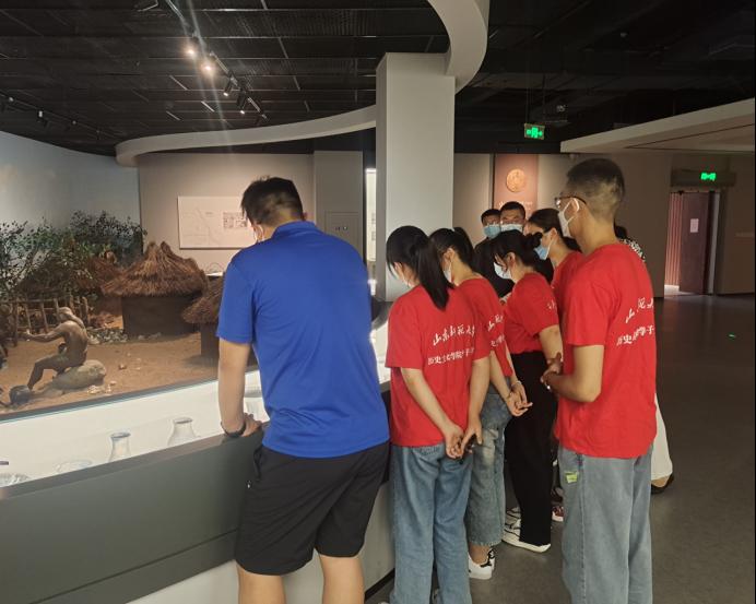 在毛馆长等人的带领下,实践队一行参观了即墨博物馆的上下两个通史展区与专题展区,一睹博物馆的丰富馆藏,进一步了解了馆藏品背后所承载的即墨的气息,感受即墨浓厚的文化底蕴。跟随着毛馆长讲解的脚步,实践队队员如同乘舟于奔涌向前的历史长河,欣赏先人创造的文物,倾听千古传诵的故事。