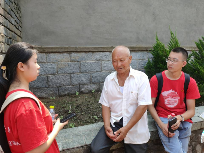 实践队一行人首先在县委遗址对刚接待完参观团的吴汇平进行采访。吴汇平的一生都是在奉献人民、服务人民中度过的。他年轻时在经管站(农村经济经营管理站)干了九年。74年时经人介绍,做了村里的会计,一干就是四十年。14年转任支部委员,直到17年才正式退休。退休后,吴汇平又申请负责接待参观县委遗址的人员,每天对遗址进行打扫和维护。作为一名老党员,他一直积极服务群众,70年积极组织村里修缮街道,绿化村落环境。80年村里还没通电,他积极帮忙拉电,解决了村里的用电问题。90年代,他帮村里打井,让村里人都用上了自来水。吴汇平说,作为党员,做什么都要身先士卒,要让村里人都过上好日子。吴汇平的一生,真正做到了“有一份光,发一份光,有一份热,发一份热”。