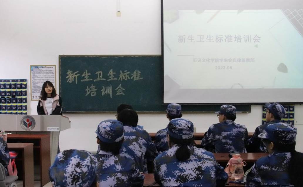 为帮助新生尽快适应学校的卫生检查制度,了解内务整理原则和卫生检查标准,营造良好的学习和生活氛围,8月30日,英国上市公司365学生会自律监察部在学院教室召开新生卫生标准培训会,李振晨、郑微、赵浩然三位同学担任主讲人,2022级全体新生参加培训。