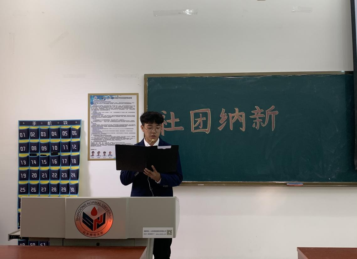 本次社团活动总共分为社团宣讲和自主报名两个环节。活动伊始,在主持人的介绍下,山师棋牌桌游社率先入场。社长以精美的PPT和精彩的发言展现了社团活动种类多样、活动内容休闲有趣,引起在座同学的兴趣。随后各社团负责人轮番上台,流光画雨汉服社的负责人通过视频展现“汉服走秀”新颖活动,并结合自己的相关经历,讲解汉服在华夏文化复兴并走向世界舞台方面的重大意义。小影院负责人通过展示多张电影海报,并结合当下时事热点,来介绍观影活动的新奇有趣,以此吸引大量同学的注意。麒麟学社社长的发言,尽展学社深厚的历史、浓郁的学风,连续四年居高不下的报名率以及所获各种各样学术荣誉,大大激发同学们报名的热情。最后绿茵魔足足球社社长用图片向大家直观介绍社团训练内容,并邀请刚入社的新同学分享训练感受,从而为大家打消训练强度是否过于严苛的相关顾虑。大家意犹未尽,在此起彼伏的掌声中,宣讲环节圆满结束。