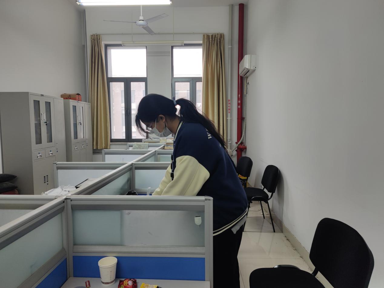 活动共分为两个部分,第一部分是提高青年教师教师办公幸福感,为了给学院教师们提供整洁舒适的办公环境,学院组织学生志愿者开展打扫教师办公室的志愿服务活动。过程中,学生志愿者认真听取老师意见、询问老师办公习惯,并选择不耽误老师正常办公的时间段进行拖地、清理垃圾和整理书架等一系列活动;同时,志愿者还动员其他同学在老师上课前将黑板擦干净,既节省了上课时间,又便捷了老师讲课,在服务教师的同时拉近了师生之间的距离。