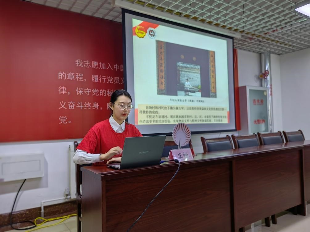 宣讲队员宋畅首先以《新中国未来记》为内容导入,回顾了中国近代化的历史。紧接着,宋畅阐述了社会主义革命和建设时期、改革开放时期中国共产党探索中国现代化道路的过程,并以兰考县徐场村民族乐器产业、象群迁徙、中国维和部队等实例详细介绍了中国式现代化的五大特征。最后,宋畅强调了中国式现代化崇高的历史意义。
