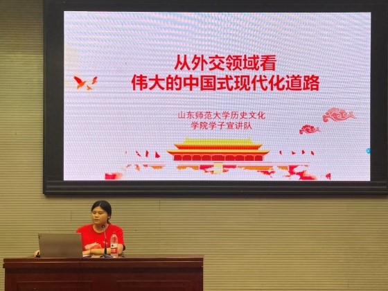 为学习贯彻党的二十大精神,推动广大青年学生学习践行新思想,砥砺奋斗新征程。5月12日下午,我院学子宣讲队走进山东女子学院会计学院开展题为“从外交领域看伟大的中国式现代化道路”的宣讲,会计学院全体团学干部和学生代表150余人参加活动。
