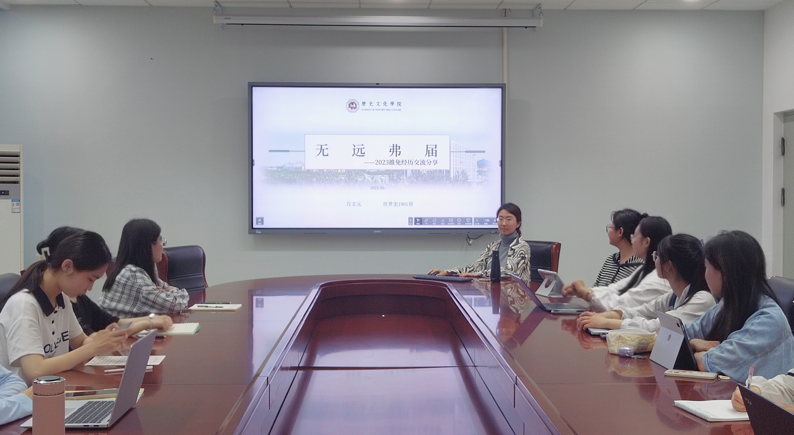 会上,万文元以“无远弗届”为题,从个人经历、推免历程和心得教训三个方面向同学们展开介绍自己研究生推免的经验。首先,她向大家陈述自己大学四年在课程学习、社会实践活动、学生工作等方面的相关经历,并说明获得学院推免名额所要达到的标准。建议有参加推免意向的同学应保证课程成绩与德育成绩名列前茅,着重积极参加科研、社会实践活动。随后,她向同学们详细说明推免的具体流程,同时通过分享自己的亲身经历与心得体会,向大家详细说明推免的每一个流程的注意事项,并给予相关建议。最后,万文元与参会同学积极互动,耐心解答同学们提出的问题。万文元鼓励同学们做好自己,时刻与自我对话,同时多去尝试、挑战不同的事物。