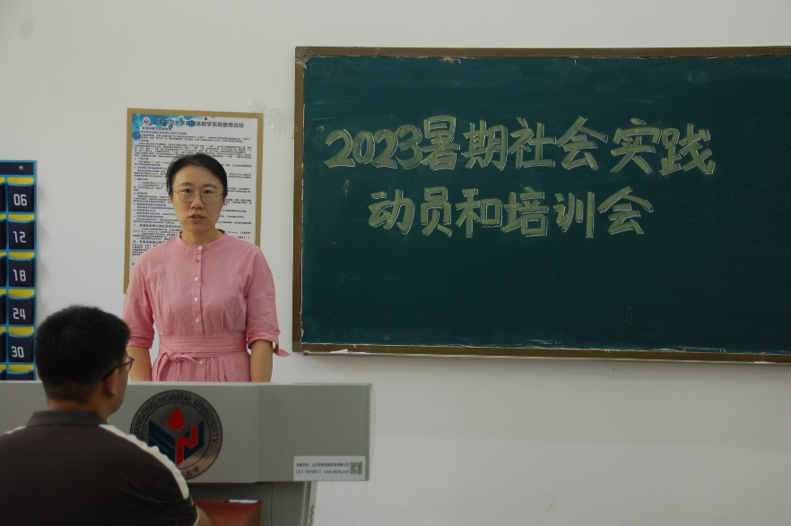 紧接着,陈嘉露、杨天月、李健分别从宣讲写稿、拍照技巧、投稿方式等方面对在座同学进行培训。她们对于社会实践的项目选择、写稿规范以及后期宣传等方面进行了详细介绍。在讲解时,陈嘉露重点强调了稿件的时效性和真实性,杨天月结合具体的案例对于图片拍摄的相关技巧作了阐释,李健对于投稿网站和投稿要求进行了详细说明。最后,青年发展部部长张笑进行总结发言,详细说明了暑期社会实践的具体要求,希望同学们以此次社会实践作为锻炼的契机,充分认识社会实践的重要性,积极参与社会实践。