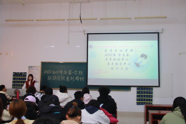 培训伊始,翟彬慧首先向各组织新成员表示热烈欢迎,并从总体着手,介绍了学院团委的组织结构,包括学生会,青年媒体中心和青年服务中心三大部分。接着介绍了学院的各位领导、老师,强调各学生会成员应树立红线意识以及学生会成员档案制度。随后,翟彬慧从礼仪规范、会议纪律、值班事务等共八个方面详细阐述了学生工作的基本要求,向2023级全体新干事分享工作经验并提出具体的建议。最后,翟彬慧宣布举行学生会、青年媒体中心培训考试的通知,勉励各位学生会成员提高自身能力,端正工作态度,不断提升自我。