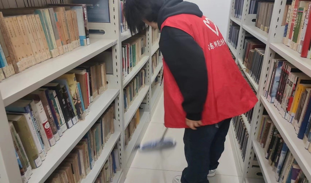 各班志愿者分工明确,按时集合到达档案室,并在老师的指导下有序进行清扫工作。志愿者们分组擦拭书架、清除书本灰尘、清点书籍数量、清扫地面,致力为同学和老师打造清新雅致的书香氛围。