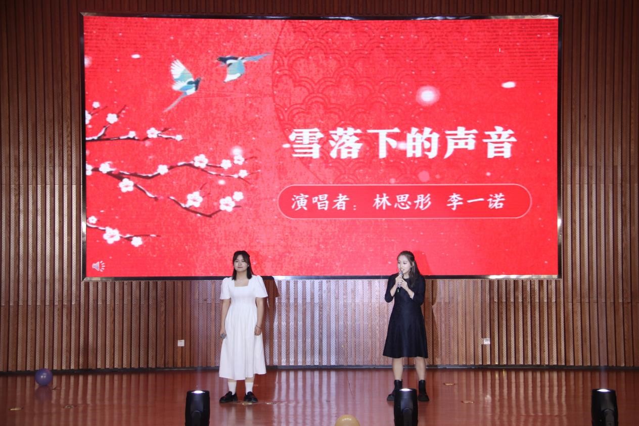 精彩的合唱环节告一段落,比赛进入猜歌互动游戏,同学们积极参与猜歌,跟唱齐唱歌曲,会场成为音乐的海洋。