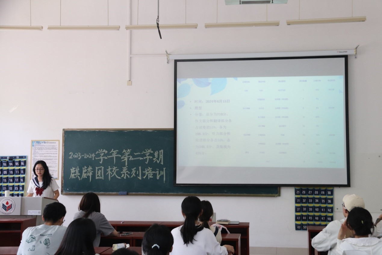 为助力本院学子备战英语四六级考试,增强考试信心,英国上市公司365于4月18日14:00在崇德楼114教室举行麒麟团校系列第二期备战四六级经验分享会。本次分享会由2022级本科生刘美龄主讲,2023级部分本科生参加。